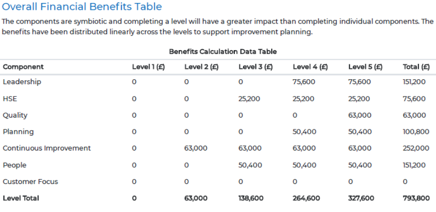 Closing the gap between current state and the business aspirations has financial and cultural benefits. Here is an extract of the current overall results and projected financial opportunities.