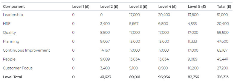 As part of the assessment process, R.I.M.E. interviewed key people from several functions to gather their views on the performance and validated this information before completing the assessment questionnaire. The Finance Director provided gross margin data to enable the financial benefits of closing the gap to be calculated. R.I.M.E. presented their findings to the MD and his senior team before finalising the result and preparing the reports.
